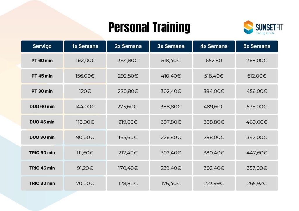 No SunsetFit, a tua jornada de treino é única e merece a atenção personalizada dos nossos personal trainers experientes. Quer o teu objetivo seja perder peso, ganhar massa muscular ou simplesmente melhorar o teu bem-estar, estamos aqui para te ajudar a alcançar resultados com eficiência e segurança. Cada treino é desenhado para atender as suas necessidades e limites, com acompanhamento constante e dicas especializadas para que possas evoluir no seu próprio ritmo. Treina connosco e descubra o poder do treino personalizado!